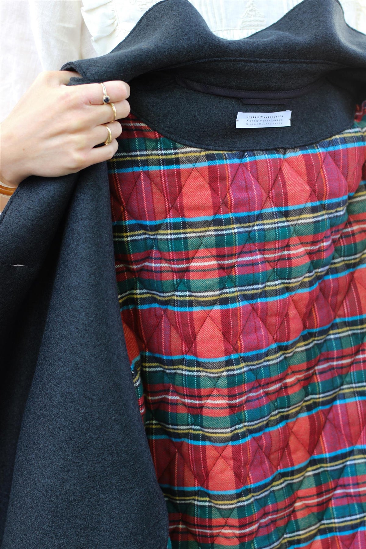 "Raglan Jacket" fra Harris Wharf London i fargen Dark Blue. En oversized jakke i presset ull med eksklusiv quiltet fôr for ekstra komfort og varme. Designet med en lang, enkelspent silhuett, brede ermer og markert krage med knappelukking. De fire knappene foran og de store klaffelommene gir et sofistikert, men avslappet uttrykk. Råkantsømmer tilfører en moderne edge til det klassiske designet. Produsert i Italia av italienske kvalitetsfibre.