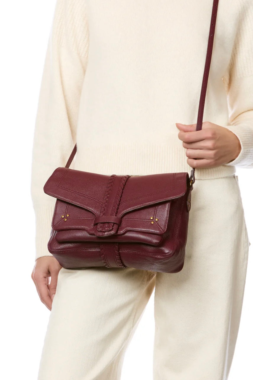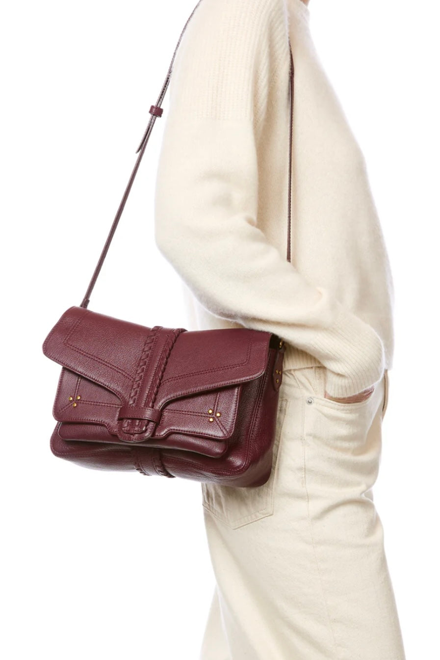 «Harry M» fra Jerome Dreyfuss i Brule, er en allsidig og funksjonell veske laget i mykt geiteskinn. Den justerbare skulderremmen kan tilpasses fra 87 cm til 125 cm, og gjør det mulig å bære vesken både over skulderen og crossbody. Vesken har et romslig hovedrom, en frontlomme med innvendig klaff, samt en flat glidelåslomme nederst i hovedrommet for sikker oppbevaring. Den håndflettede klaffen lukkes med en løkke og gir vesken et karakteristisk og gjennomført uttrykk. Vesken er helfôret i bomull.