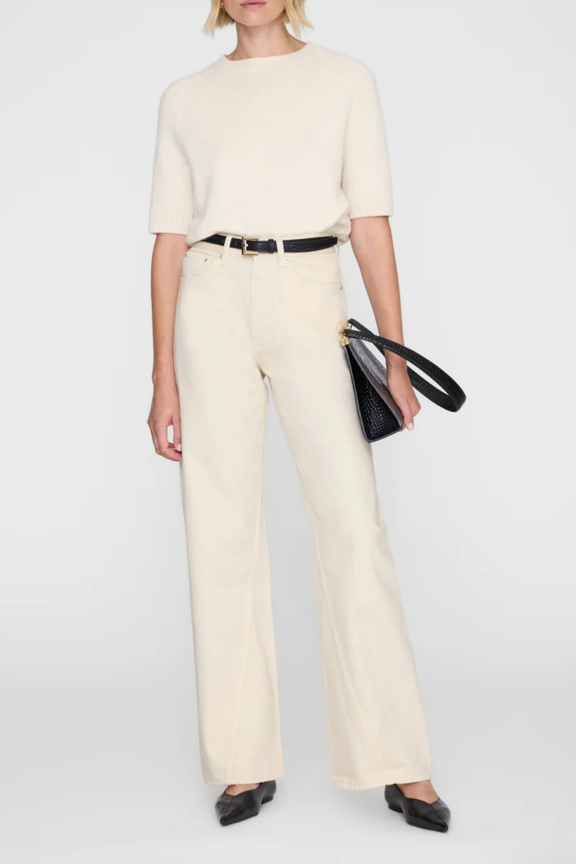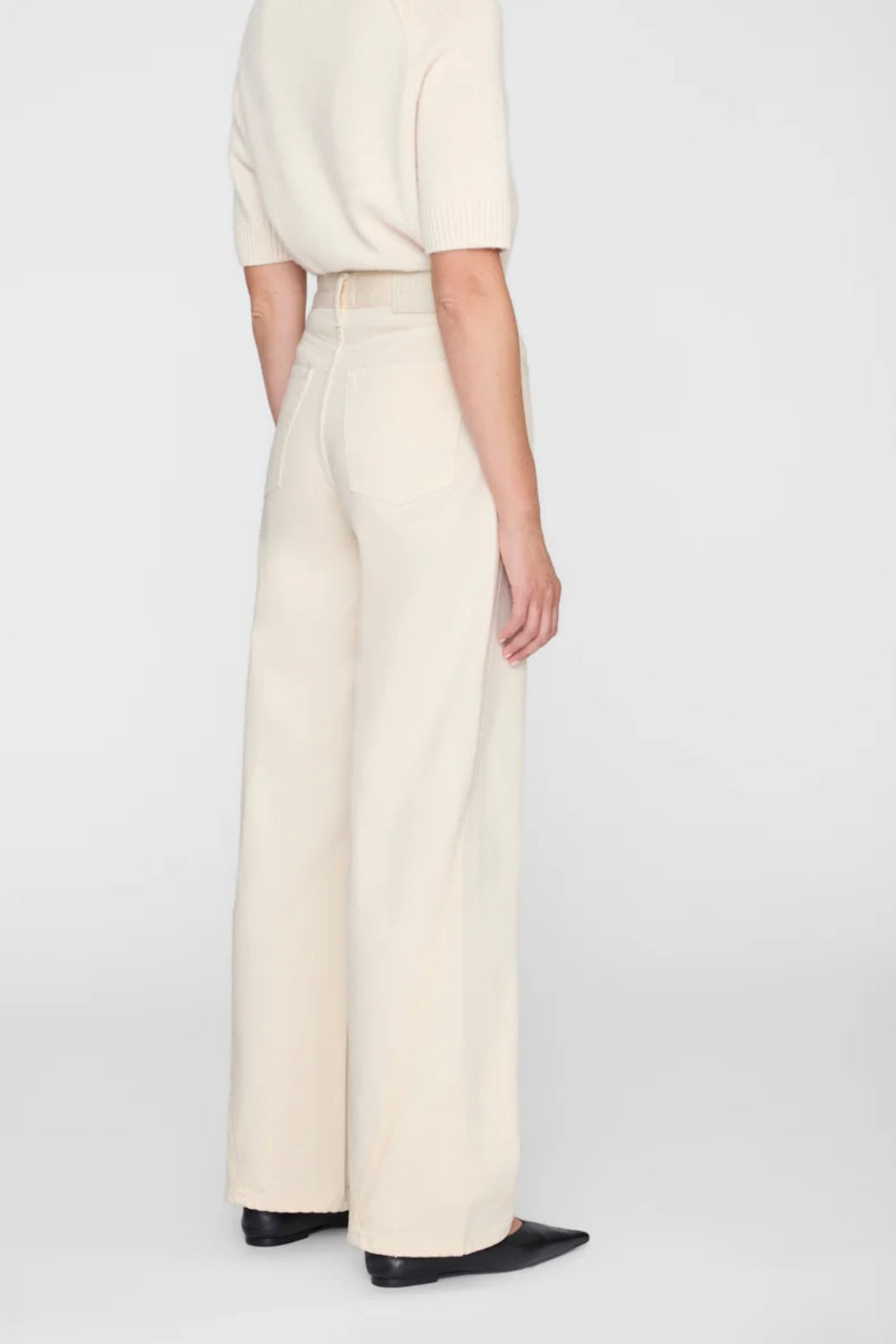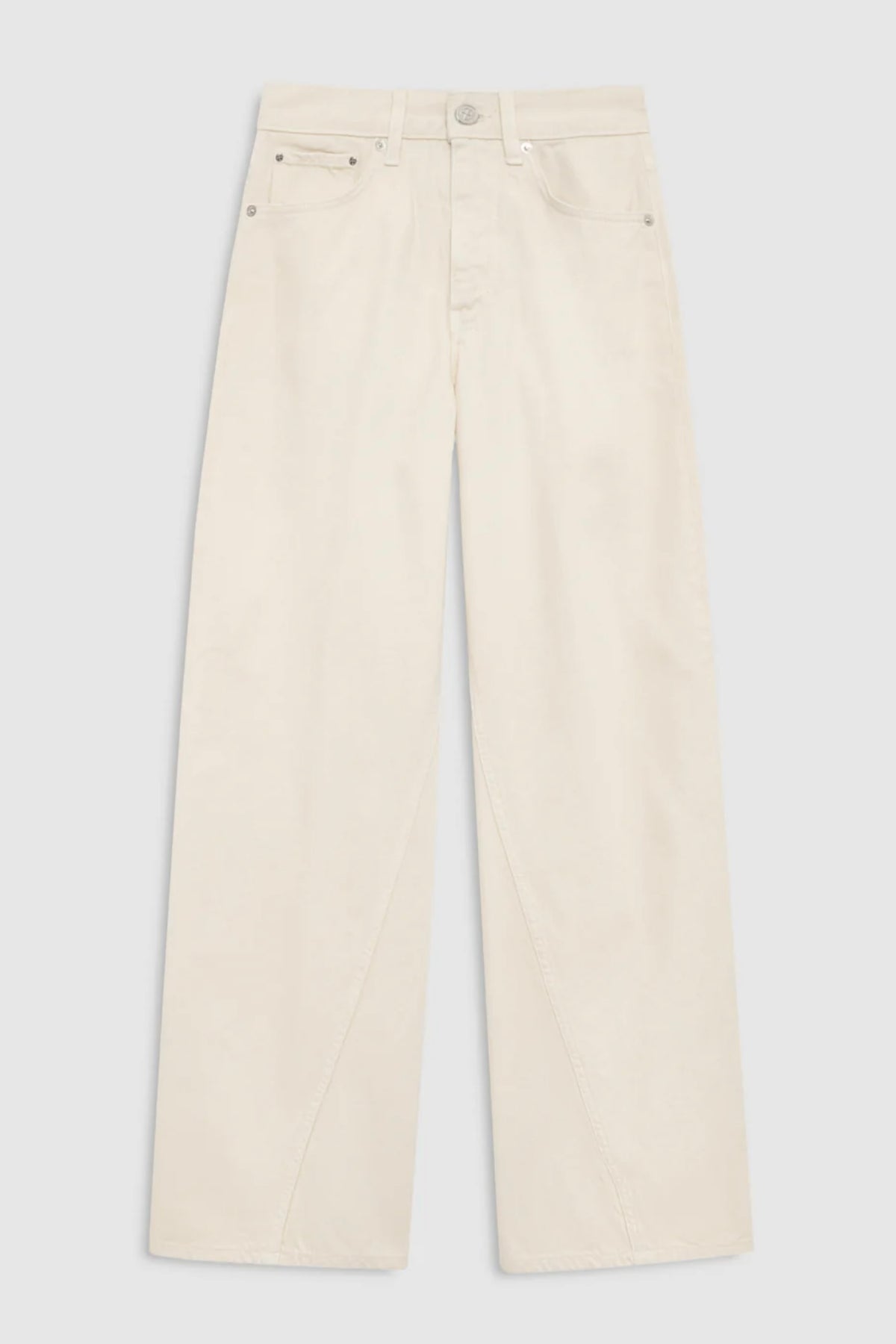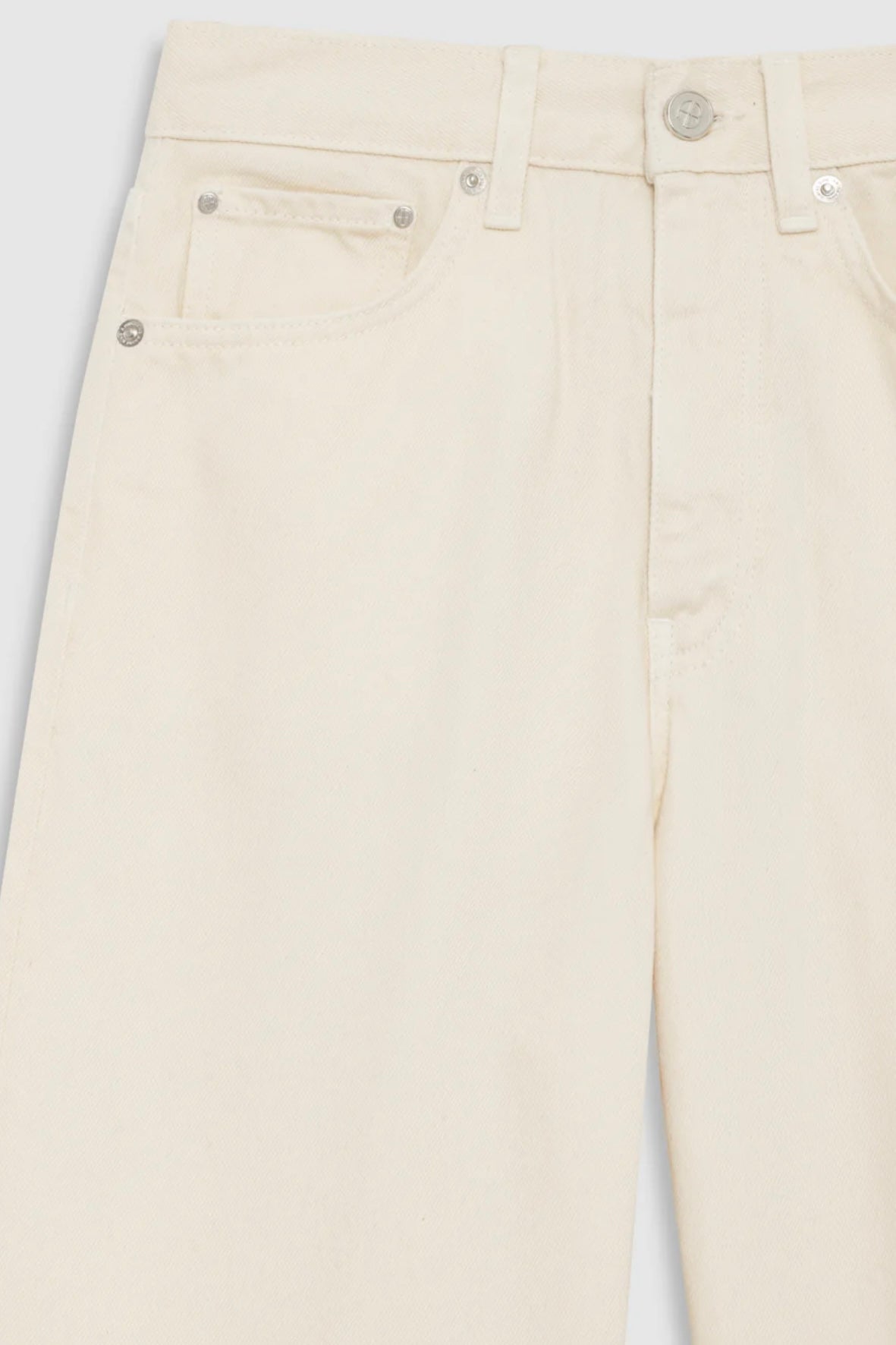 Brie Jeans fra Anine Bing i fargen cream. Avslappet denim med moderne silhuett, laget i rigid bomullsdenim uten stretch. Den myke kvaliteten gir et naturlig fall og et komfortabelt uttrykk. Buksen har høyt liv, vid og baggy passform samt lang benlengde som gir en uanstrengt og moderne look. Den er designet med klassisk femlommersdesign, knappelukking i front og rene kanter nederst. Vridde sidesømmer gir et subtilt og karakteristisk preg som tilfører jeansen ekstra personlighet.
